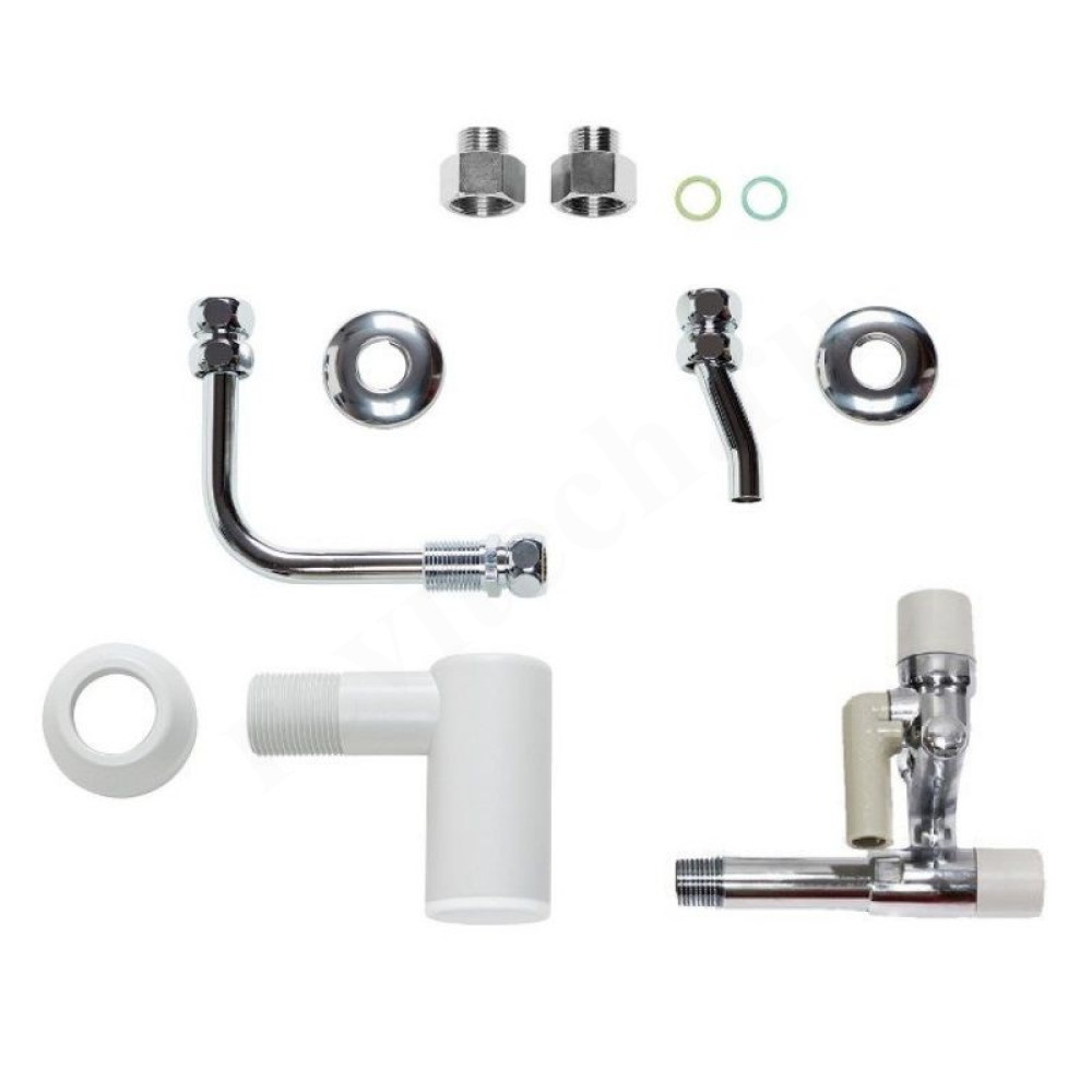 к водопроводной сети с давлением воды до 6 бар. Включает в себя комплект труб для подключения водонагревателя с декоративными манжетами, сливную воронку с декоративной манжетой, подключение R 1/2 и предохранительную группу.