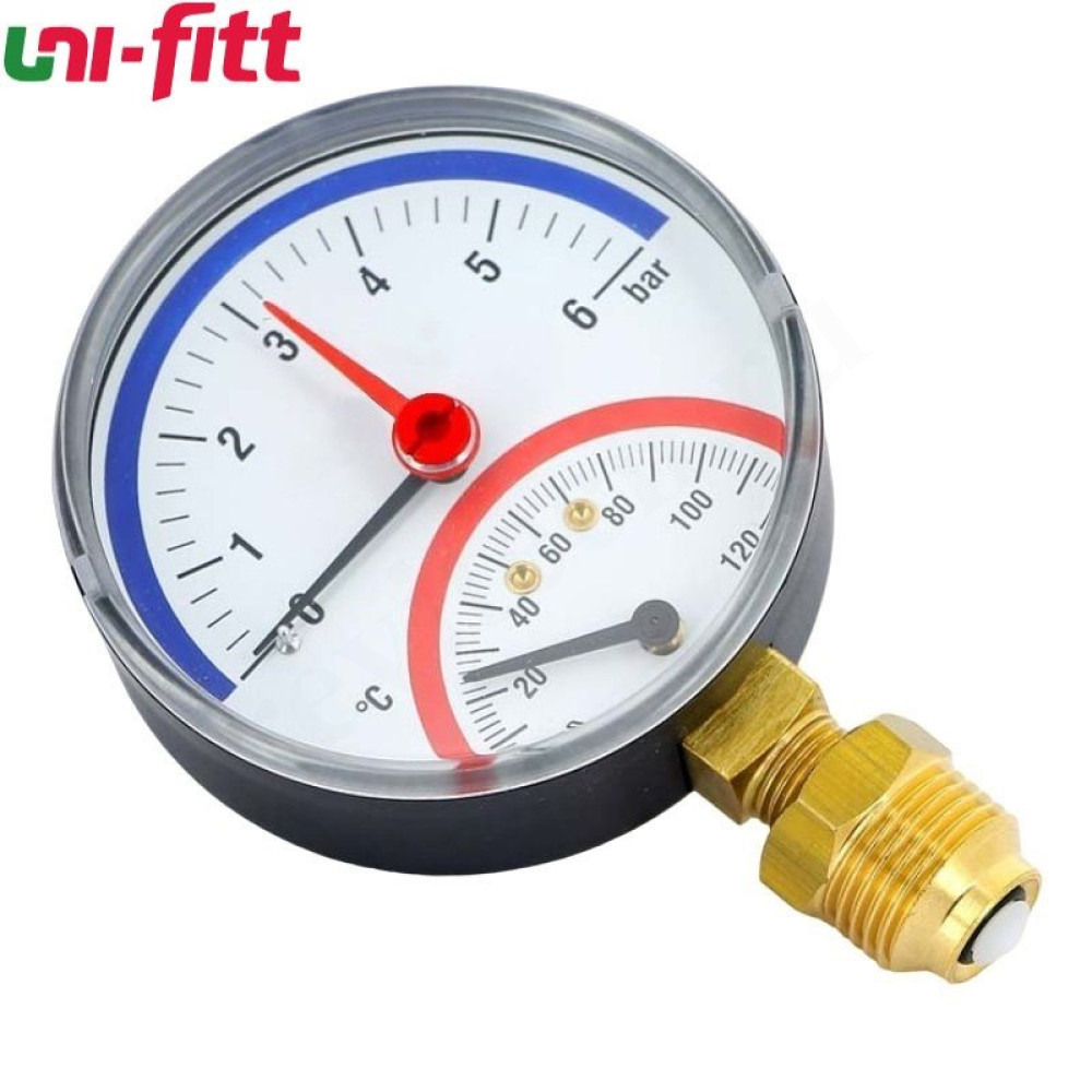 Термоманометр радиальный Uni-Fitt F+R828, 80 мм, 0-6 бар, 0-120 С