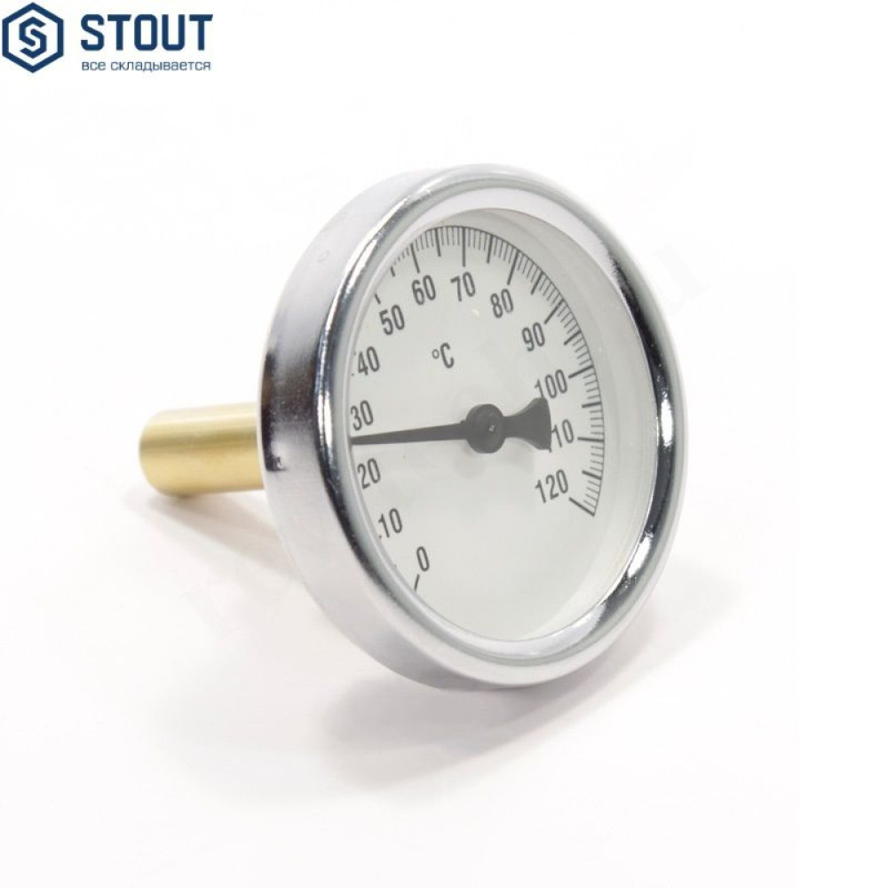 Термометр аксиальный STOUT F+R801 OR, 63 мм, 0-120 С, гильза 50 мм