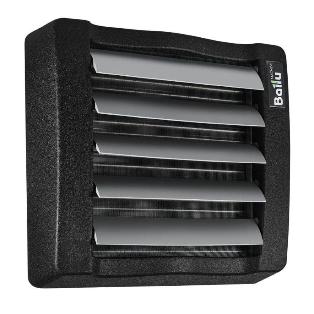 Водяной тепловентилятор Ballu BHP-W3-25-LN – прибор для обогрева коммерческих помещений высотой более 3 метров. Тепловая мощность прибора от 14 до 32 кВт в зависимости от режима производительности и температуры теплоносителя. Максимальная рабочая температура теплоносителя 150°С при давлении 16 бар, что позволяет использовать в качестве теплоносителя пар и перегретую воду. Благодаря шести полюсному двигателю водяной тепловентилятор обладает низким уровнем шума и не требует больших затрат на регулировку режимов работы. Осевой вентилятор диаметром 400 мм. создает воздушный поток длиной 12 метров и обеспечивает максимальную производительность до 2400 м3/ч. Корпус прибора изготавливают из вспененного полипропилена, что делает его легким и ударопрочным. При этом за счет пористой структуры он блокирует шум работающего двигателя. Водяной тепловентилятор устанавливается на стены, колонны или потолок при помощи кронштейна, который входит в комплект поставки.