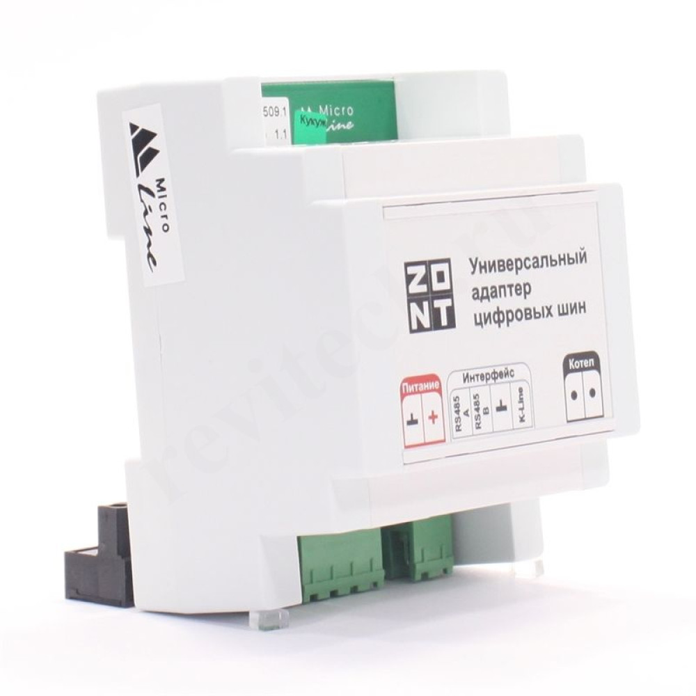 Универсальный адаптер автоматически определяет тип цифровой шины котла и обеспечивает обмен данными между его электронной платой и автоматикой ZONT: