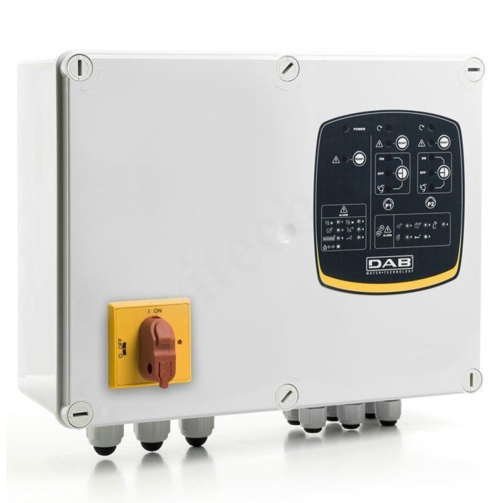 Электрический щит DAB E-BOX BASIC 230/50-60 предназначен для ручного или автоматического управления и оперативной защиты, трехфазных или однофазных электродвигателей. Электронасосы могут быть одинарного или спаренного исполнения с помощью поплавковой или термостатной системы. Защитные электрощиты, управляющих работой двух и более насосов, комплектуются автоматическим инвертором, управляющим очередностью включения электродвигателей, что позитивно сказывается на сроках эксплуатации гидроагрегатов. Состоят из следующих основных компонентов: линейный модульный выключатель подводимого питания, термозащитное реле ручным переключением в начальное положение, трансформатор, оборудованный встроенной защитой, клемник для подключения светошумовой сигнализации, индикаторную систему оповещения о режиме работы. E-BOX BASIC – блок для защиты и автоматического управления 1-2 погружными насосами, насосами систем циркуляции или насосами для повышения давления в бытовых.