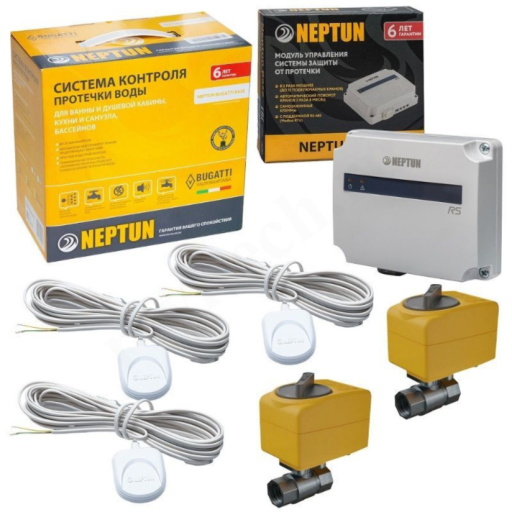 Система контроля протечки воды Neptun Base предназначена для своевременного обнаружения и локализации протечек воды в системе водоснабжения и отопления жилых домов, коттеджей, офисных зданий, магазинов. Система заблокирует подачу воды до устранения причин протечки и проинформирует о возникшей аварии звуковым и световым сигналами.