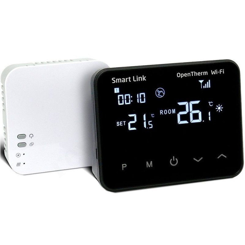 - Комнатный терморегулятор Smart Link Wi-Fi предназначен для автоматического регулирования и поддержания заданной температуры воздуха в помещении, изменения и отображения уставки температуры в котле и ГВС путём подачи сигнала по цифровой шине OpenTherm на блок управления котлом.