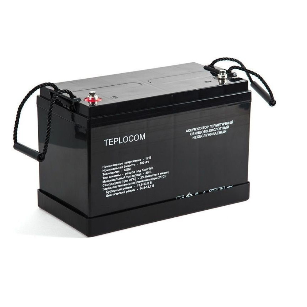 Аккумулятор герметичный свинцово-кислотный необслуживаемый TEPLOCOM 100Ач, производимый по технологии AGM, предназначен для использования в составе системы резервного питания.