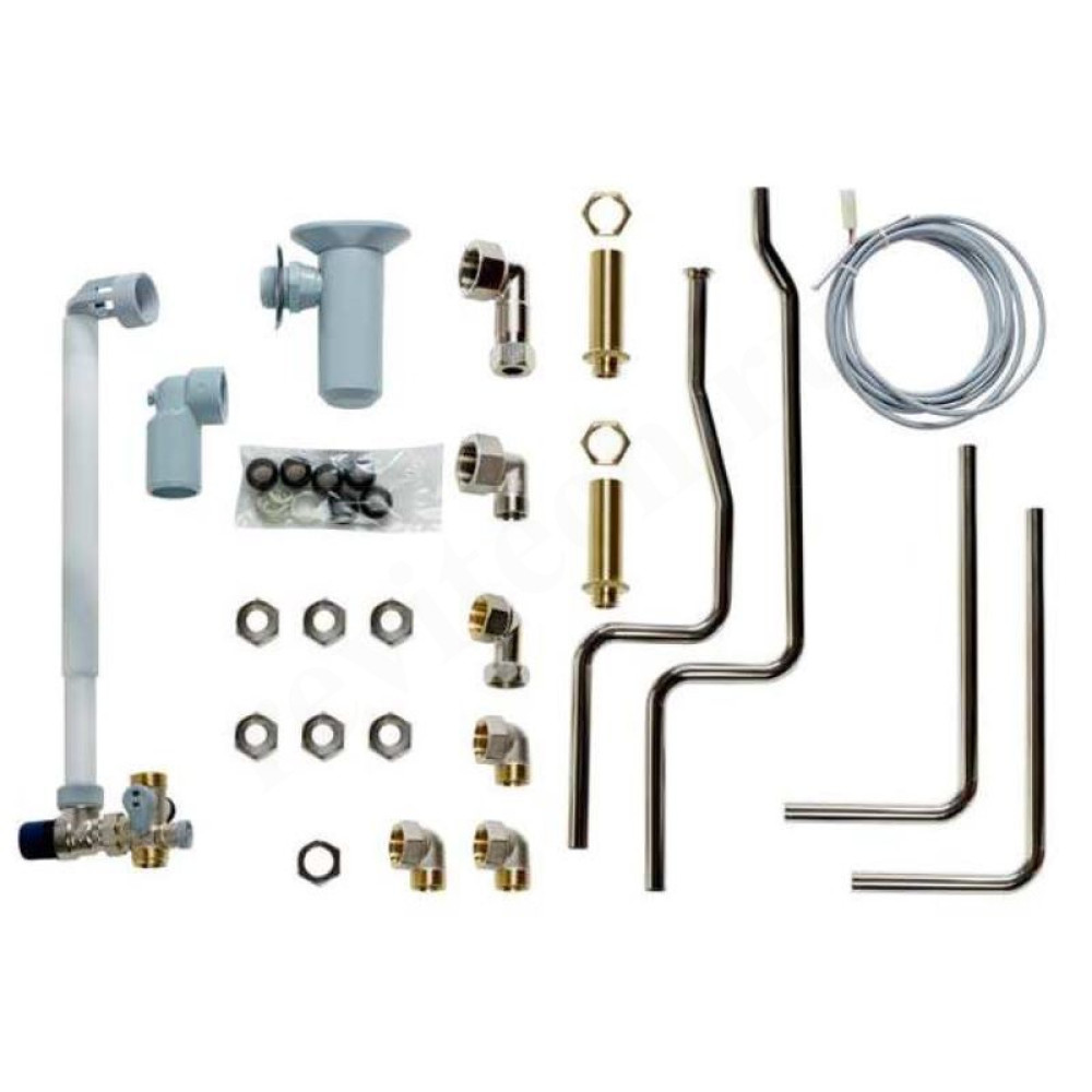 Комплект включает в себя соединительные трубы и штуцеры, сливную воронку, датчик водонагревателя, группу безопасности на 10 бар.