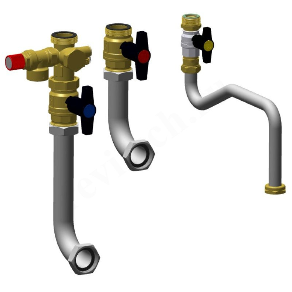 Комплект подключения для монтажа в каскаде в ряд. Применяется при монтаже каскада в ряд, а также при монтаже СКС для котлов, расположенных спереди. В комплекте запорные краны, кран наполнения/слива, предохранительные клапаны на 3 и 6 бар (установка в зависимости от системы), трубки. Предусматривается подключение к стандартному коллектору ELCO.