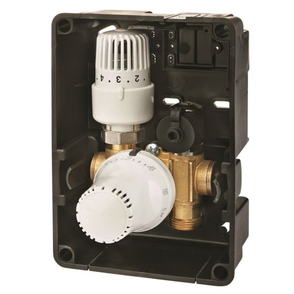 Регулировочный коробдля регулирования систем поверхностного отопления в зависимости от температуры в помещении, с регулируемым ограничением температуры обратного потока.