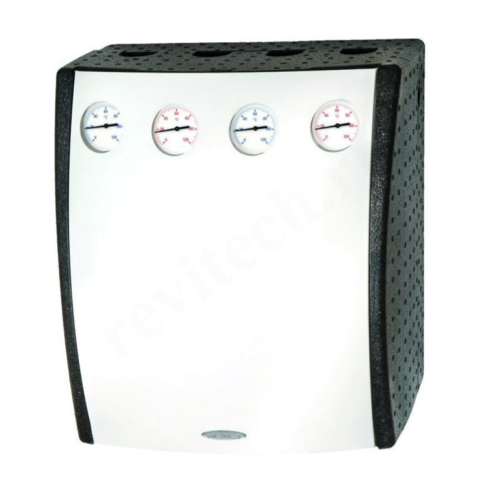 Коллектор с реализованной функцией гидравлической стрелки — для работы со схемами как с котловым насосом, так и без него;