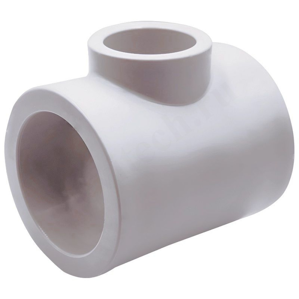 Тройник переходной PP-R для труб диаметром 63 мм с переходом на диаметр 40 мм под углом 90 градусов и выходом под трубу диаметром 63 мм.
