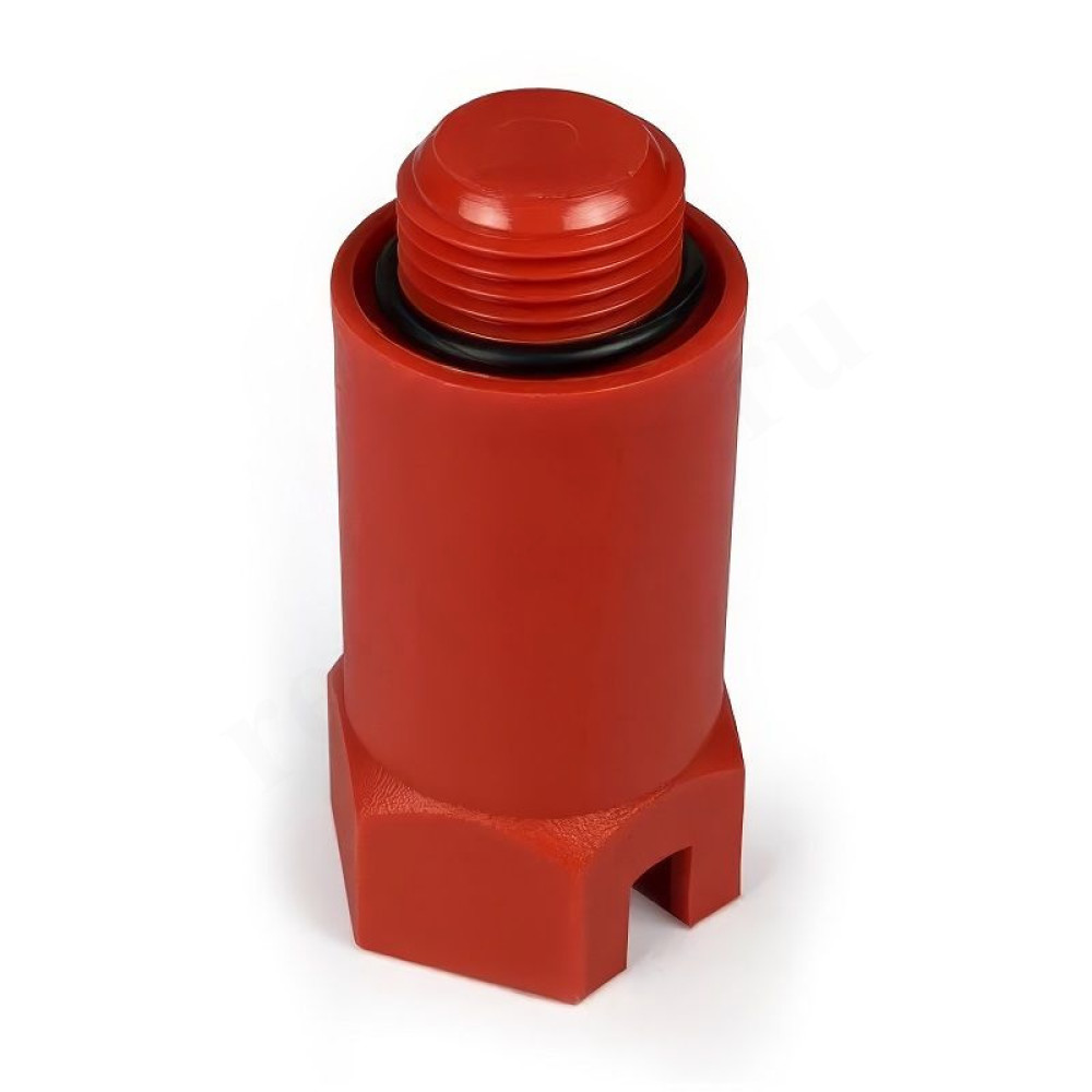 Заглушка 1/2", RTP, резьба, нар., полипропилен, красный, длинная