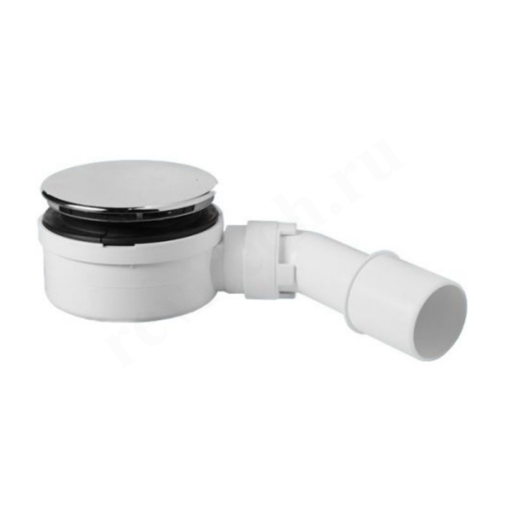 Сифон бутылочный для поддона (сливное отверстие 90-100мм) с выпуском (D105мм, крепежные винты М5х40мм) из нержавейки и "грибком"; высота трапа 53мм; выход Дн=40/50мм; цвет-хром.