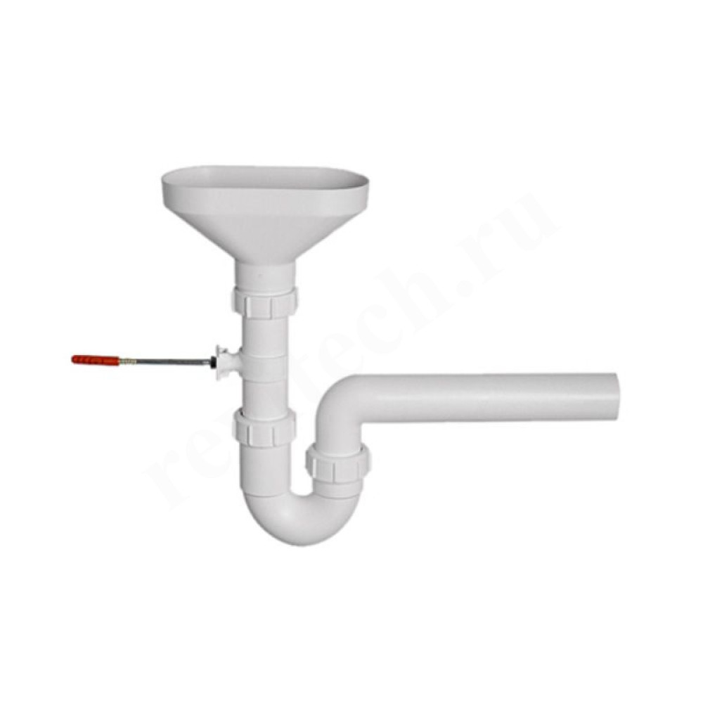 Сифон трубный Р-образный (1 1/2"х40мм) для разрыва потока/струи с овальной (170ммх85мм) приемной воронкой и горизонтальной отводной трубой D40мм; в комплекте крепеж к стене