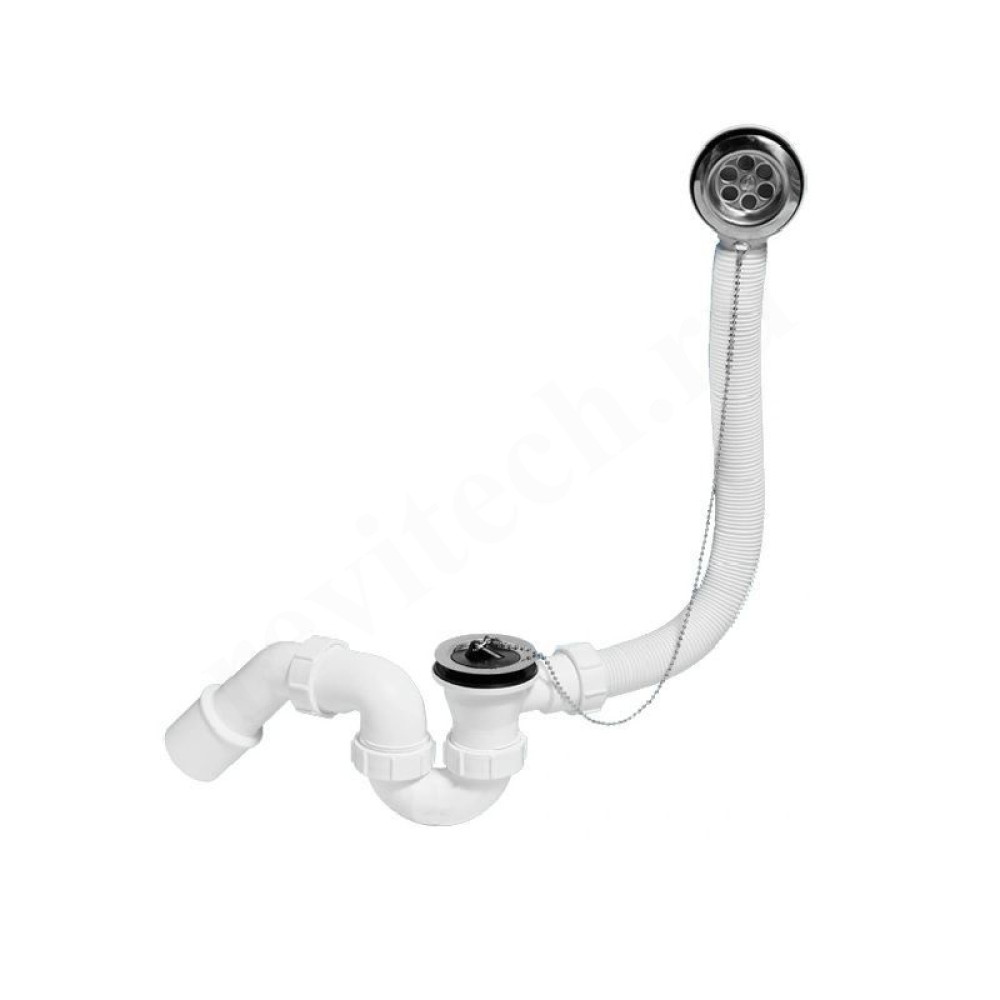 (1 1/2'х40мм) для ванн "стандартный" с переливом (L505ммхD34мм), нержавеющими решетками, пробкой и цепочкой; выход Дн=40/50мм