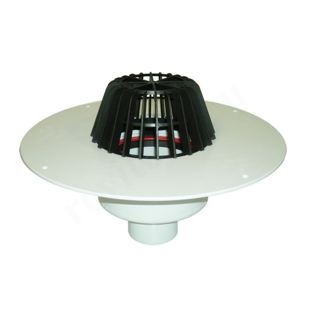 Кровельная воронка с листвоуловителем, с теплоизоляцией, с корпусом из поливинилхлорида для приклейки ПВХ мембраны, с вертикальным выпуском DN 110.