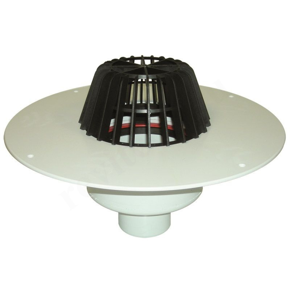 Кровельная воронка для плоской кровли DN160 с вертикальным выпуском, с теплоизолирующим корпусом, с ПВХ-консолью для приваривания ПВХ-полотна и с листвоуловителем d 180 мм. Строительная защита во время монтажа в комплекте.