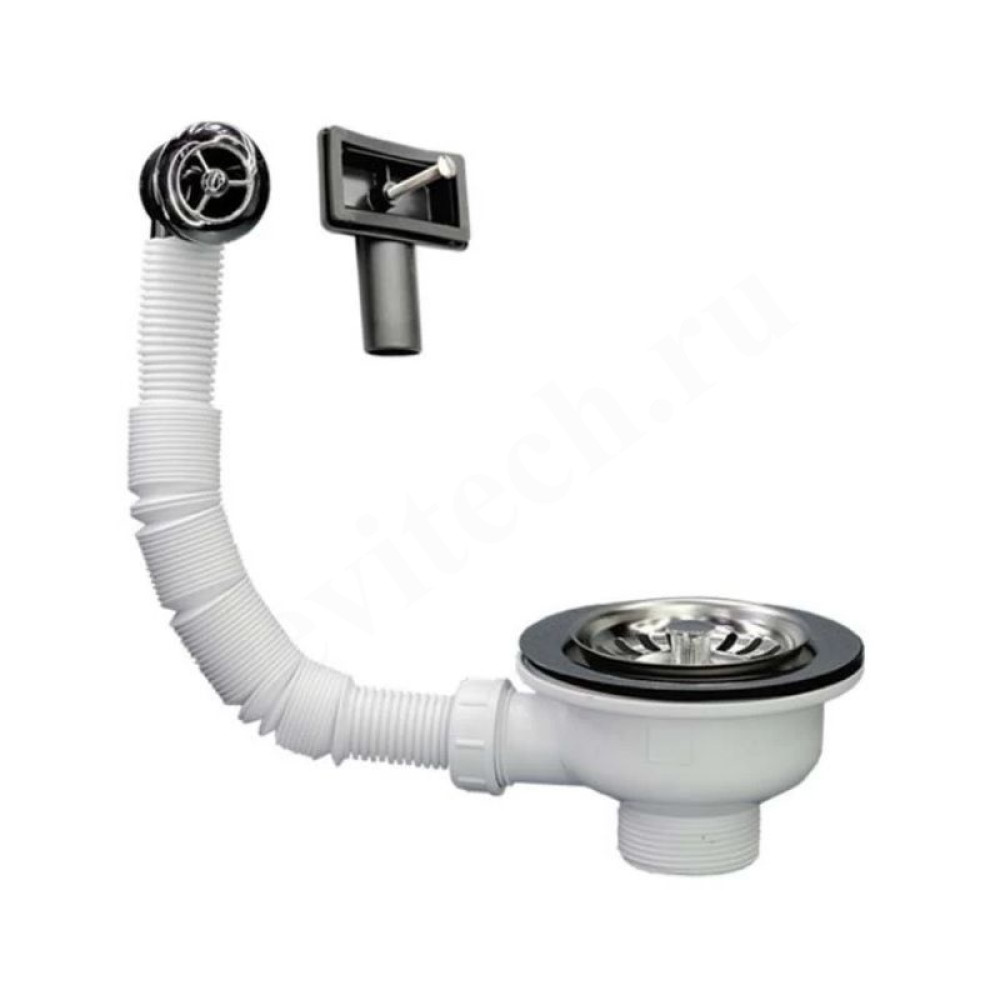 Слив-перелив универсальный под круглое/прямоугольное отверстие перелива (L235ммхD25мм, 113мм нержавеющая решетка) с фильтрующей решеткой-пробкой; выход 1 1/2"«папа»; цвет-хром