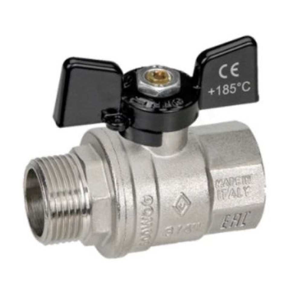 Кран шаровой резьб. 1", PN40, Bugatti OREGON 307, латунь, вн.р.- нар.р., с бабочкой