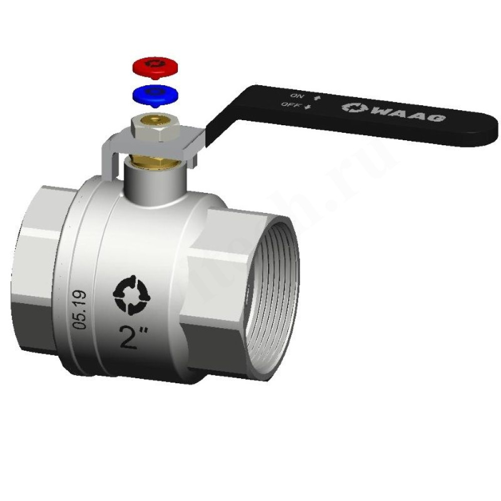 Кран шаровой резьб. 2", PN25, WAAG, латунь, вн.р.- вн.р., с рычагом