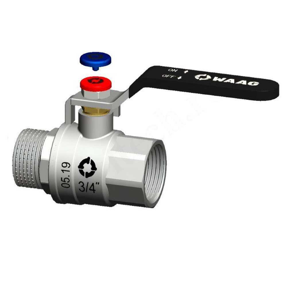 Кран шаровой резьб. 3/4", PN40, WAAG, латунь, вн.р.- нар.р., с рычагом