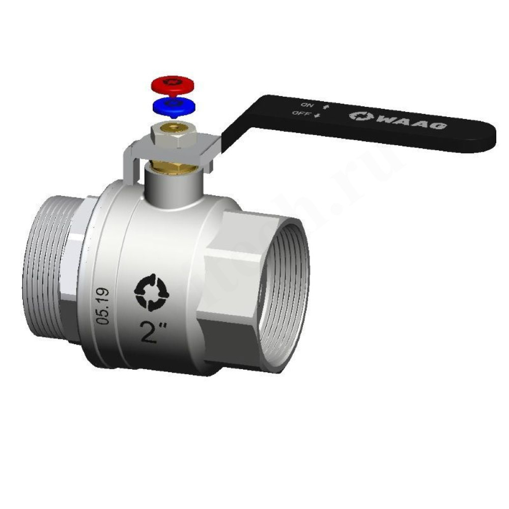 Кран шаровой резьб. 2", PN25, WAAG, латунь, вн.р.- нар.р., с рычагом
