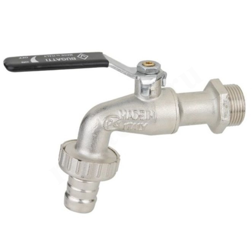 Кран водоразборный со штуцером Bugatti Alaska 661 латунный, ручка — рычаг из стали.