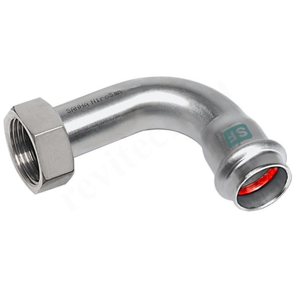 Отвод 15-3/4", Sanha NiroSan SF, 19002M, пресс-резьба, вн., сталь нержавеющая, с накидной гайкой