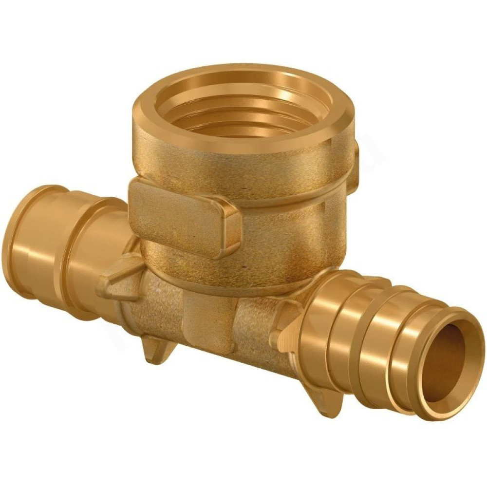 Тройник из латуни для соединения труб из сшитого полиэтилена PE-Xa с отопительными и санитарными приборами, резьбовыми коллекторами, запорно-регулирующей арматурой и т.п. Технология соединения трубы с фитингом основана на способности труб из сшитого полиэтилена восстанавливать свою первоначальную форму после расширения благодаря молекулярной памяти.