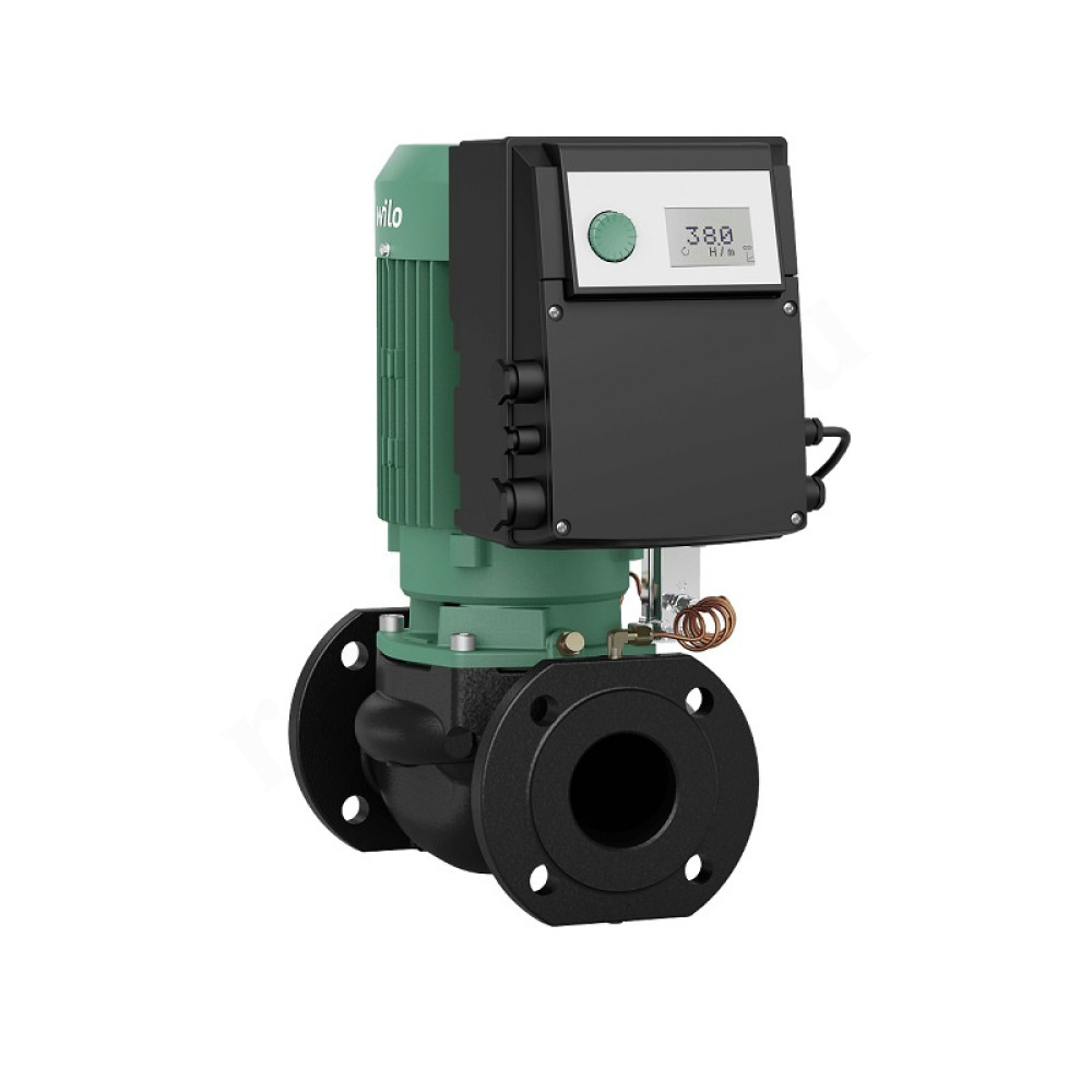 Центробежный насос с сухим ротором линейного типа для установки в трубах или на фундаменте со встроенным частотным преобразователем для электронного регулирования параметров, в том числе постоянного или переменного перепада давления (Δp-c/Δp-v). Трехфазный электродвигатель с частотным преобразователем
