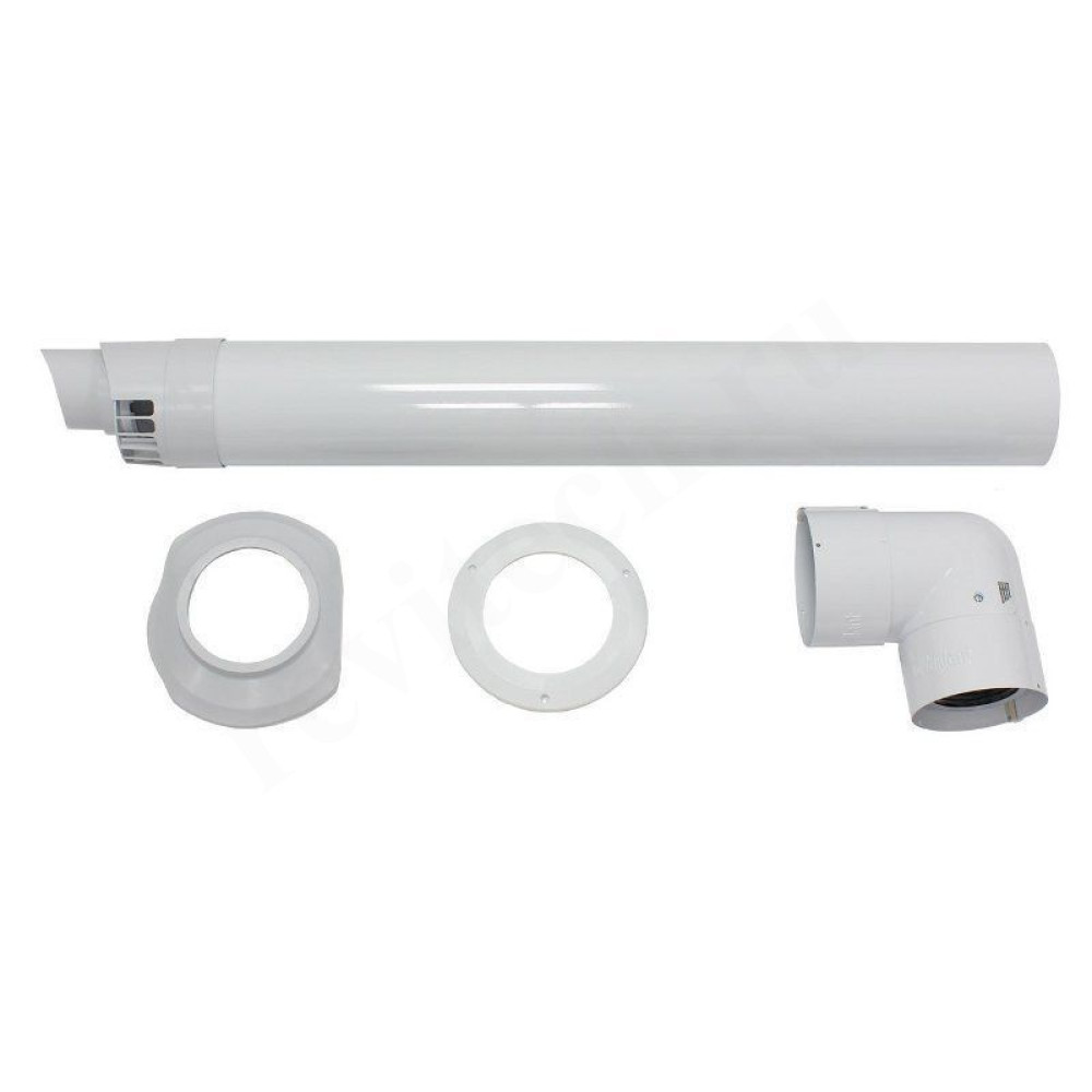 Состоит из участка трубы для притока воздуха / отвода продуктов сгорания длиной 1,0 м, отвода 87°, двух декоративных розеток (внешней и внутренней) для оформления прохода через стену, крепёжного и уплотнительного материала. В комплекте с соединительным хомутом.