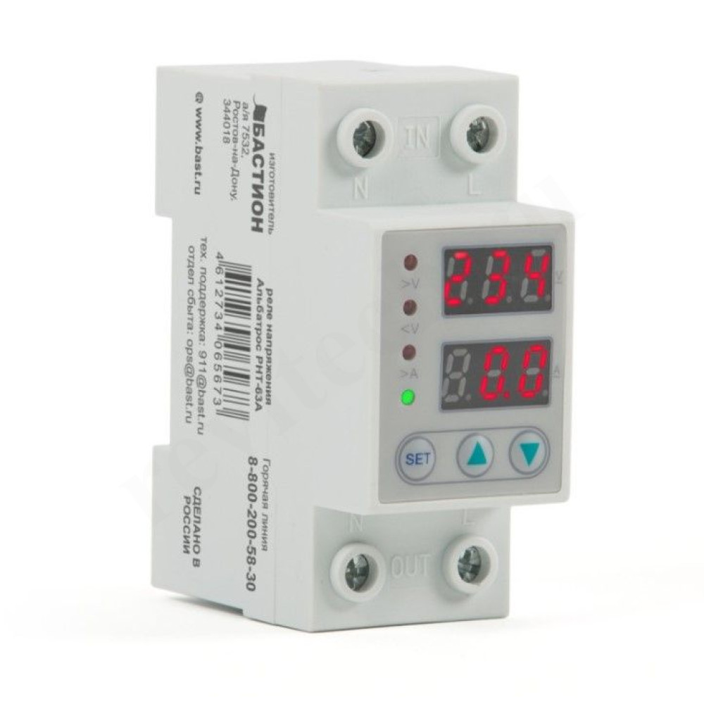 Изделие Альбатрос РНТ-63А предназначено для защиты нагрузки от скачков и провалов напряжения и от перегрузки по току путем отключения нагрузки. Изделие имеет функцию автоматического восстановления после срабатывания.
