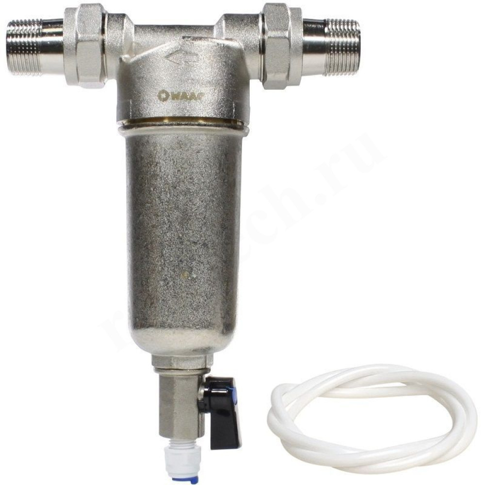 Фильтр для холодной и горячей воды предназначен для очистки от механических примесей питьевой и хозяйственной воды. Он защищает трубопроводы, а так же установленные на них арматуру и оборудование от функциональных нарушений и коррозии, вызываемых такими примесями, как песок, стружка, частицы ржавчины и др. Фильтры не предназначены для фильтрации растворителей, жиров, масел и других смазочных сред, а также водорастворимых веществ. Для осуществления промывки необходимо открыть сливной кран, выпускающий скопившиеся на дне чаши фильтра примеси; подача воды при этом не прерывается.