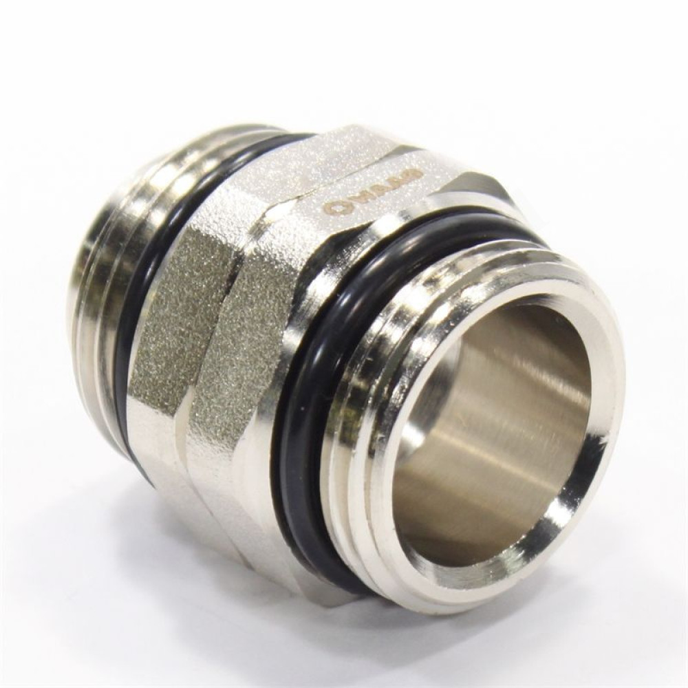 Сдвоенные ниппели предназначены для соединения коллекторных блоков между собой, с насосно-смесительными узлами, байпасными группами. Состоят из двух латунных никелированных резьбовых патрубков, соединенных между собой с помощью пружинной фиксирующей шайбы, что позволяет патрубкам вращаться относительно друг друга. Уплотнение – двумя кольцами из резины EPDM. Дополнительных герметиков не требуется.