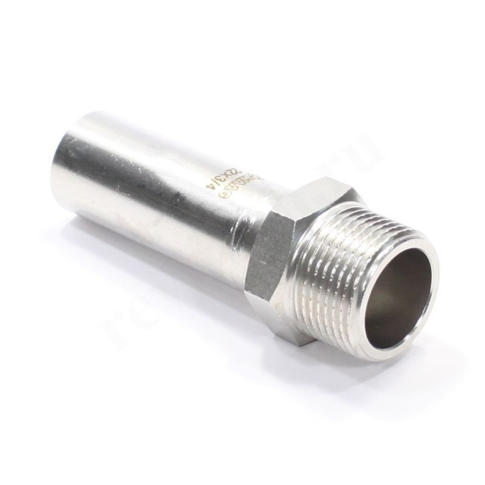 Вставка с наружной резьбой предназначена для перехода с пресс-соединения на резьбовое. Изделие изготовлено из стали AISI 304.