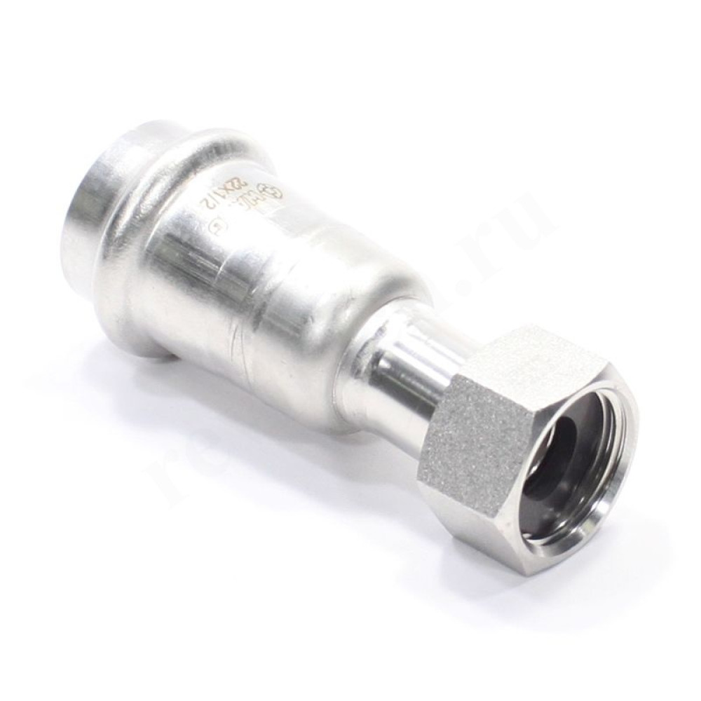Пресс-соединение – бесштуцерное. Обжатие производится с помощью пресс-инструмента V-профиля. Накидная гайка комплектуется прокладкой.