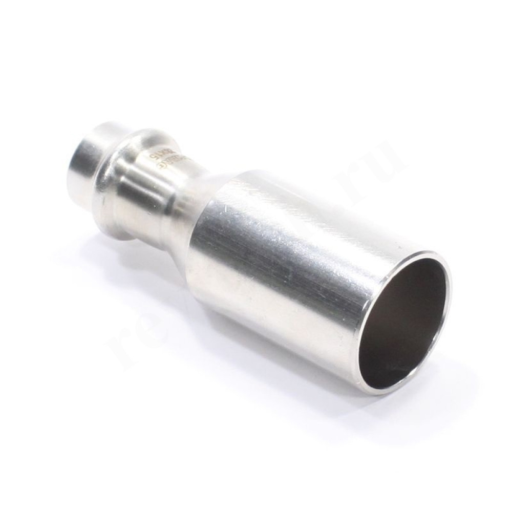 Фитинг обеспечивает при монтаже переход трубопровода с одного диаметра на другой. Достоинством бесштуцерных соединителей является малый коэффициент местного сопротивления (сужение канала практически отсутствует). Фитинг рассчитан на обжатие с помощью пресс-инструмента V-профиля.