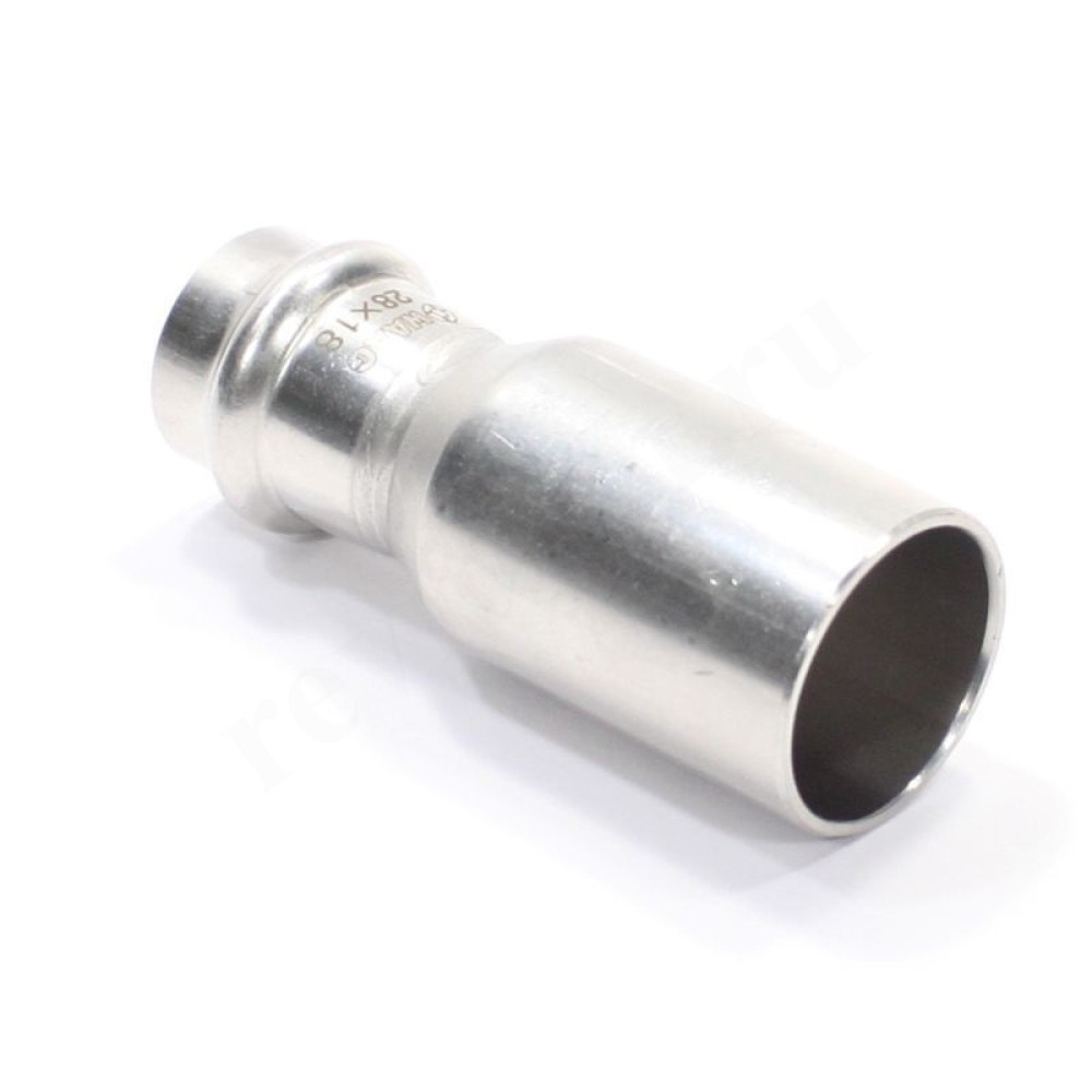 Фитинг обеспечивает при монтаже переход трубопровода с одного диаметра на другой. Достоинством бесштуцерных соединителей является малый коэффициент местного сопротивления (сужение канала практически отсутствует). Фитинг рассчитан на обжатие с помощью пресс-инструмента V-профиля.