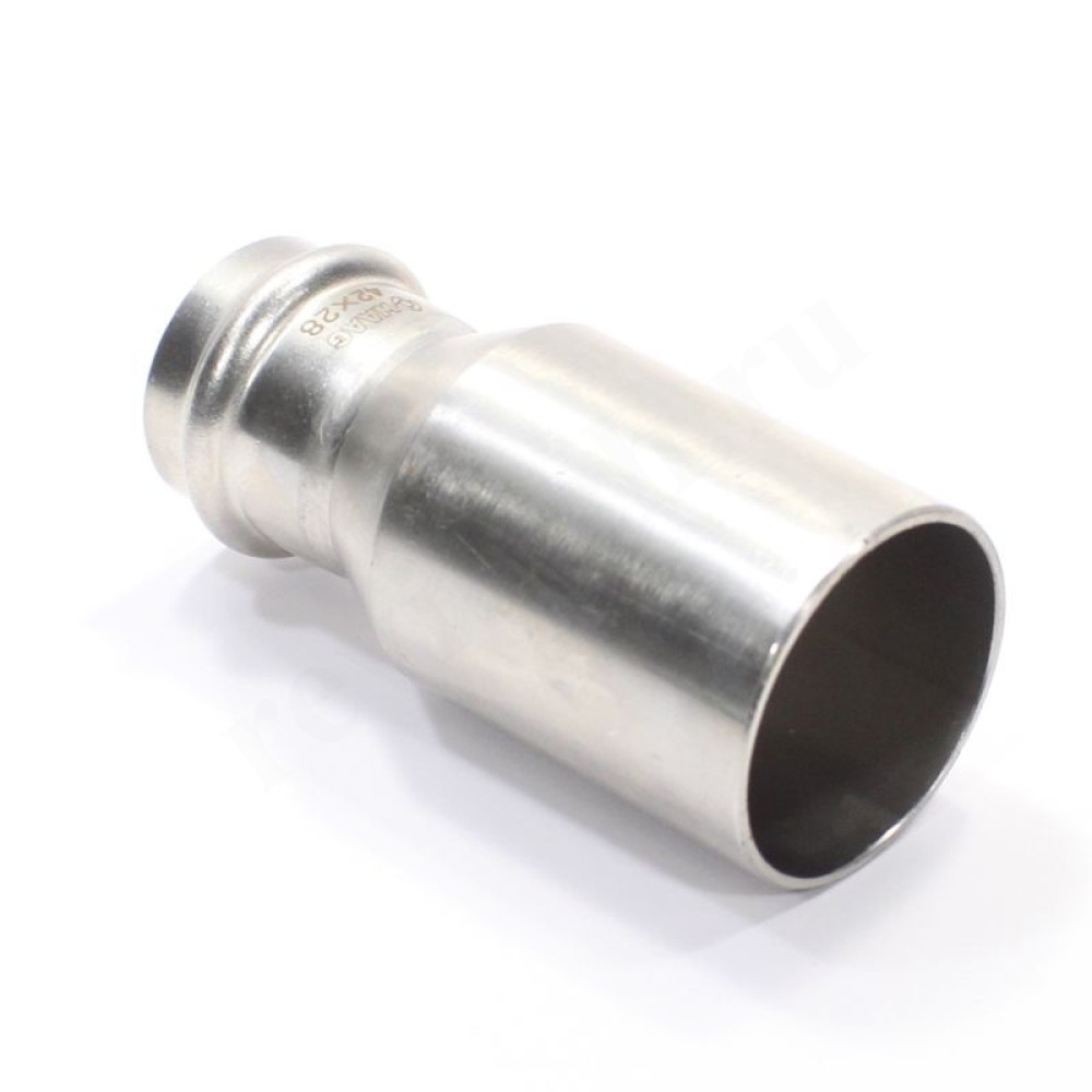Фитинг обеспечивает при монтаже переход трубопровода с одного диаметра на другой. Достоинством бесштуцерных соединителей является малый коэффициент местного сопротивления (сужение канала практически отсутствует). Фитинг рассчитан на обжатие с помощью пресс-инструмента V-профиля.