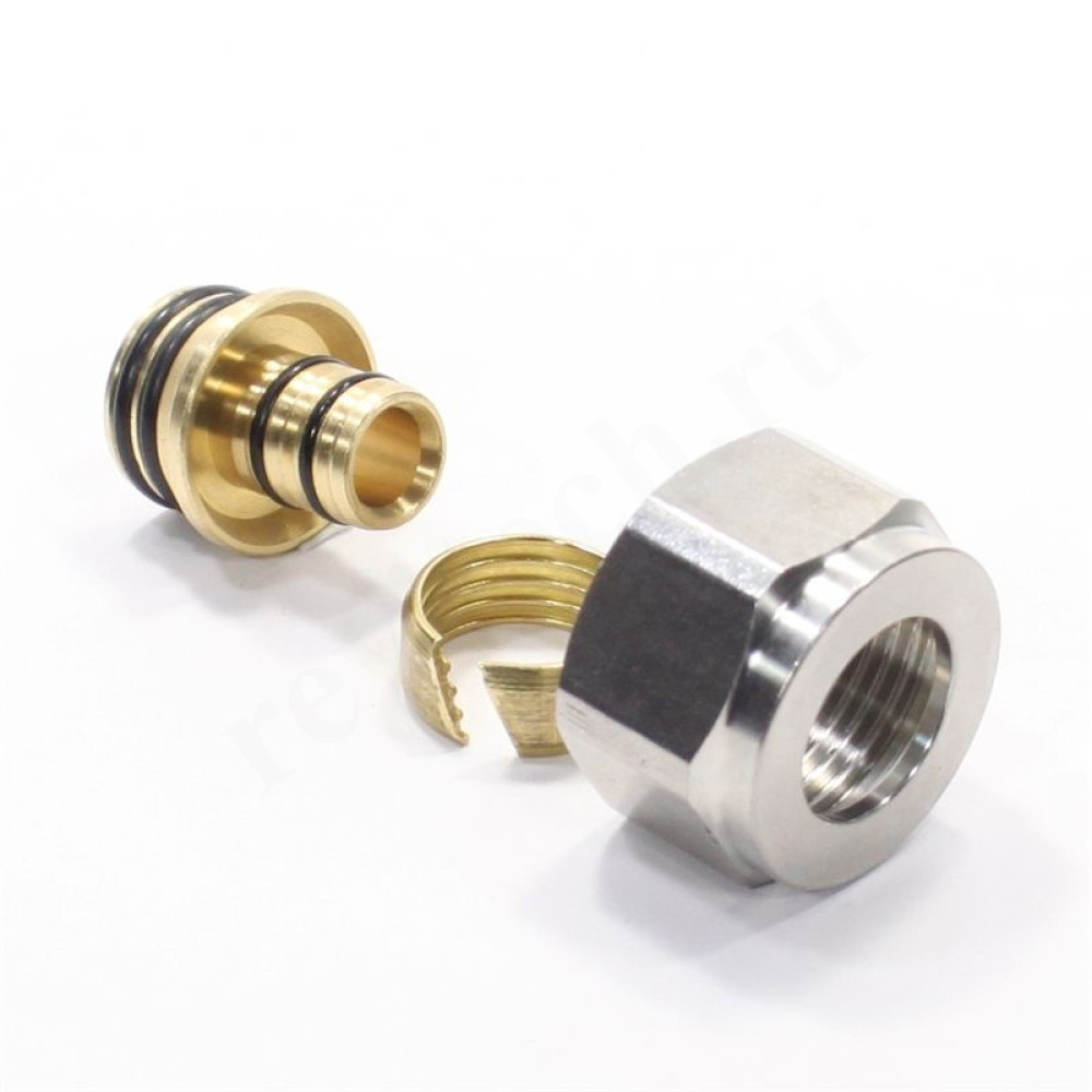 Резьбозажимное Flex-X изготавливается из покрытой латуни. Внутренняя резьба трубная цилиндрическая G3/4' Евроконус. Для присоединения труб PE-Xa 16х2,2, 10 бар к радиаторным узлам и коллекторам с наружной резьбой 3/4'.
