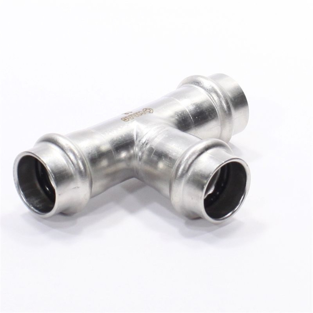 Трехраструбный пресс-тройник из нержавеющей стали обеспечивает соединение трех тонкостенных стальных труб систем водоснабжения, отопления, иных инженерных и технологических установок с рабочей температурой до 120 °С и давлением до 16 бар.