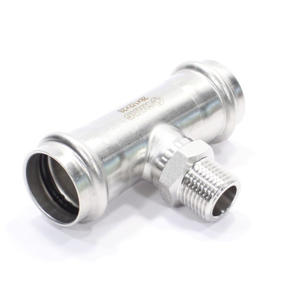 Тройник 28-1/2"-28, WAAG Heavy Inox, пресс-резьба, нар., сталь нержавеющая