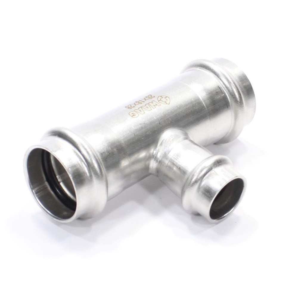 Тройник 28-18-28, WAAG Heavy Inox, пресс-пресс, сталь нержавеющая