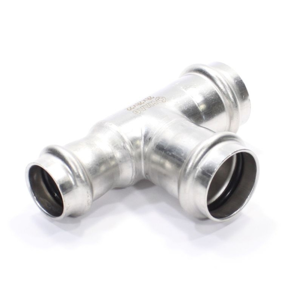 Трехраструбный пресс-тройник из нержавеющей стали обеспечивает соединение трех тонкостенных стальных труб систем водоснабжения, отопления, иных инженерных и технологических установок с рабочей температурой до 120 °С и давлением до 16 бар. Изделие изготовлено из стали AISI 304. Материал уплотнительных колец – эластомер EPDM.