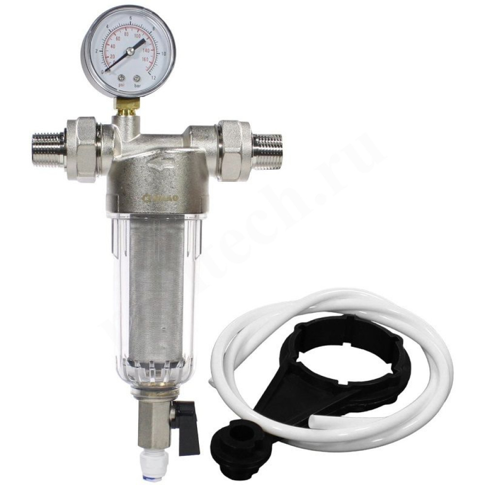 Фильтр для холодной воды предназначен для очистки от механических примесей питьевой и хозяйственной воды. Он защищает трубопроводы, а так же установленные на них арматуру и оборудование от функциональных нарушений и коррозии, вызываемых такими примесями, как песок, стружка, частицы ржавчины и др. Фильтры не предназначены для фильтрации растворителей, жиров, масел и других смазочных сред, а также водорастворимых веществ. Манометр, входящий в комплект фильтра, даёт возможность контролировать давление в системе. Для осуществления промывки необходимо открыть сливной кран, выпускающий скопившиеся на дне чаши фильтра примеси; подача воды при этом не прерывается. Удобство слежения за степенью загрязнения фильтра обеспечивается прозрачностью его корпуса.