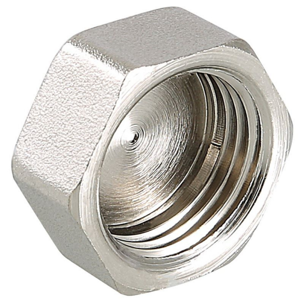 Латунная никелированная трубопроводная заглушка с шестигранной головкой. Имеет внутреннюю трубную цилиндрическую резьбу, совместимую также с наружной конической трубной резьбой.