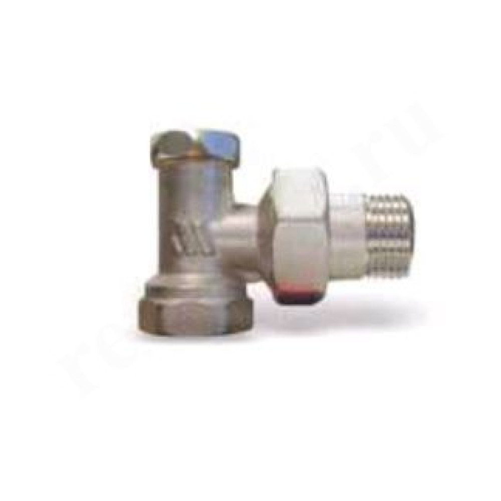 Никелированный клапан, радиаторный, запорно-регулирующий, угловой. Шток клапана с мягким уплотнением.