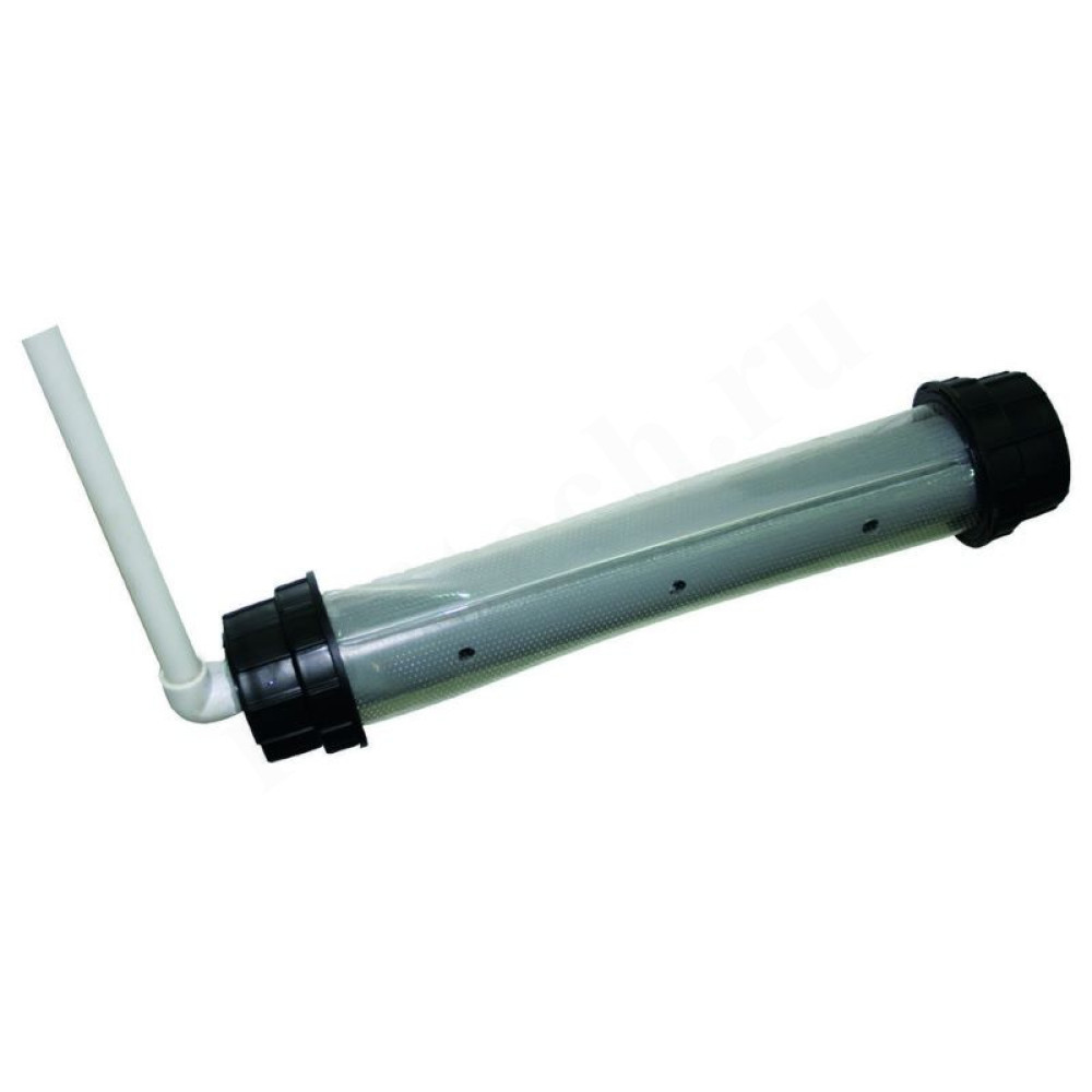 Аэрационный элемент используется для распределения воздуха, подаваемого компрессором. Воздух поступает сквозь перфорированный материал, при этом образуется большое количество крошечных пузырьков, которые поднимаются к поверхности воды, насыщая ее кислородом. Расположен в камере аэротенка. Внешний диаметр элемента составляет 63 мм. - Входящий патрубок воздуховода 20 мм. - Пара заглушек 63 мм. - Полиуретановый рукав - Трубка для нагнетания кислорода 50 мм.