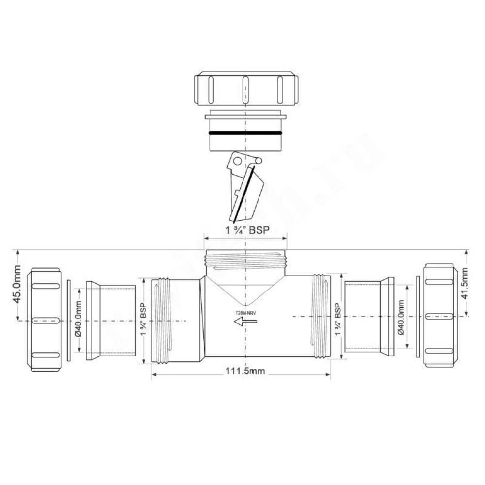 Клапан устанавливается в любом месте, где проходит слив в канализацию. Монтируется только в горизонтальном положении. Имеет ревизию для прочистки. Удобен, прост в монтаже.