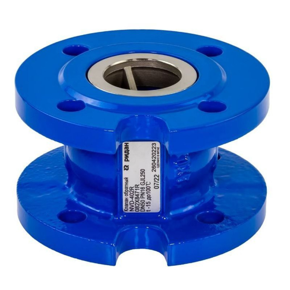 Клапан обратный осевой фланц. DN50, PN16, Ридан NVD, чугун, затвор-сталь коррозионно-стойкая
