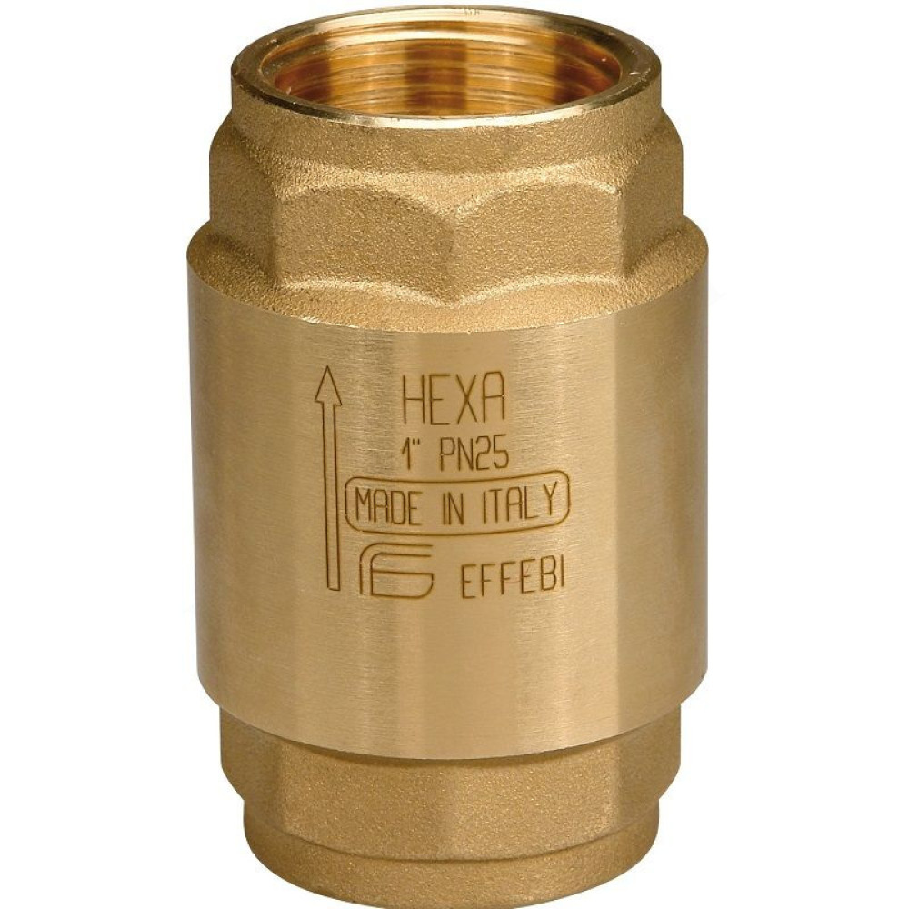 Клапан обратный осевой резьб. DN25, PN25, Ридан NRV EF, латунь, вн.р., затвор-пластик